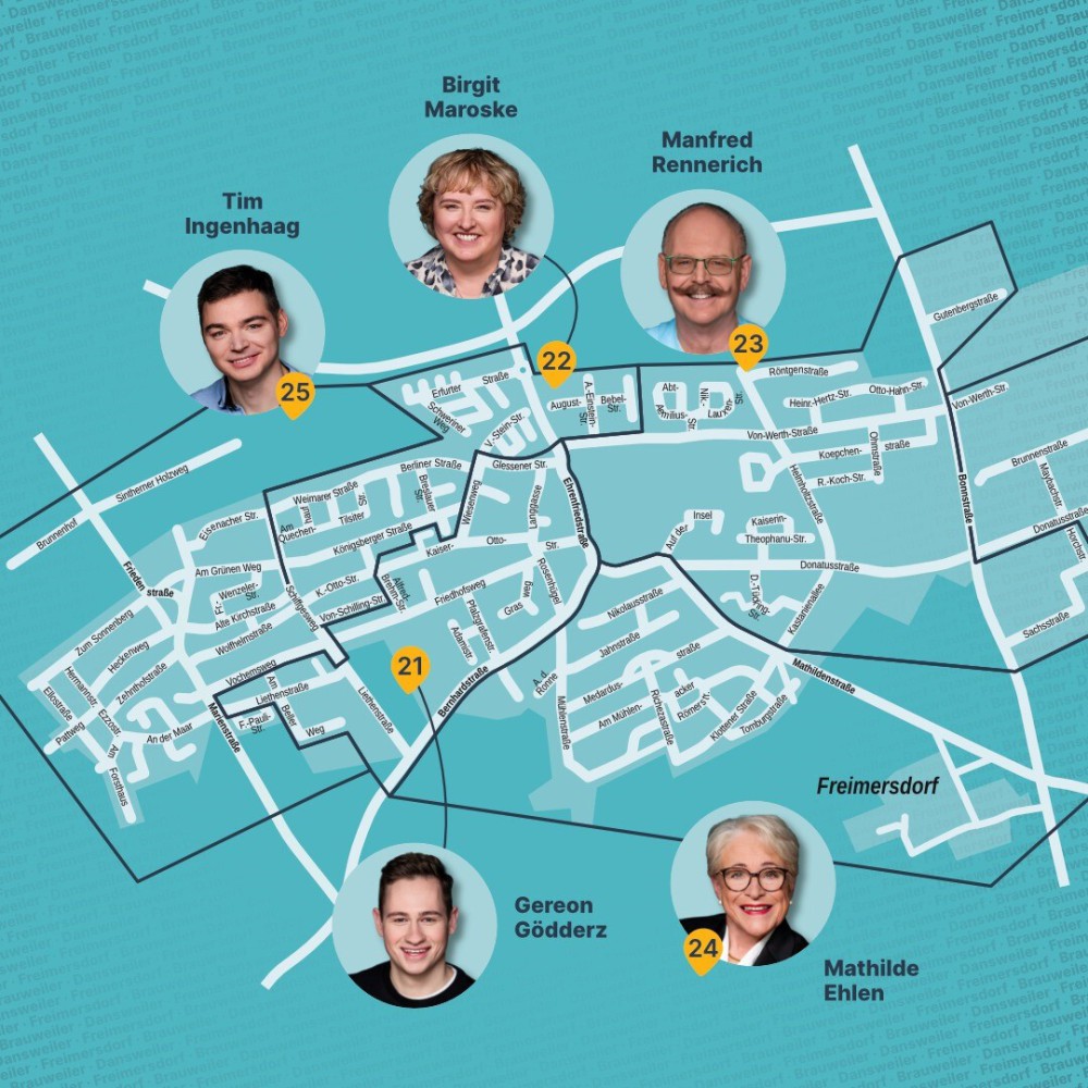 Das Ergebnis steht für breite Unterstützung und ein klares Bekenntnis zu verlässlicher Kommunalpolitik. Gereon Gödderz setzt sich in Wahlkreis 21 durch und ist mit 24 Jahren künftig der jüngste CDU-Ratsherr in Pulheim. In Wahlkreis 22 bestätigt Birgit Maroske den Kurs einer sachorientierten Ortspolitik. Manfred Rennerich erzielt in Wahlkreis 23 mit 40 Prozent eines der stärksten CDU-Ergebnisse stadtweit und unterstreicht damit das Vertrauen in seine Arbeit. Mathilde Ehlen gewinnt Wahlkreis 24 und verbindet Erfahrung mit einem offenen Ohr für die Anliegen der Menschen. Besonders erfreulich ist der Erfolg in Wahlkreis 25: Tim Ingenhaag holt in Dansweiler erstmals seit mehr als einer Dekade wieder ein Direktmandat für die CDU.