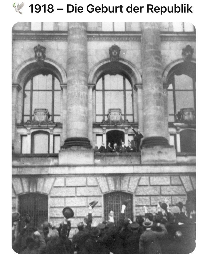 Am 9. November 1918 rief Philipp Scheidemann vom Balkon des Berliner Reichstags die Deutsche Republik aus. Damit endete die Monarchie, und die Weimarer Republik begann – der erste demokratische Versuch in Deutschland.