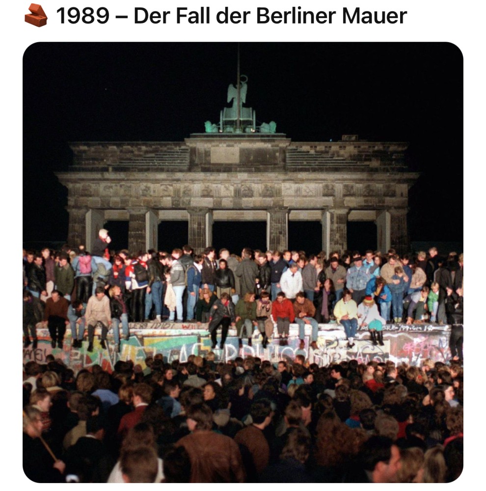 1989 – Der Fall der Berliner MauerEin Moment der Hoffnung: Am Abend des 9. November 1989 öffneten sich die Grenzübergänge in Berlin. Tausende DDR-Bürger*innen strömten in den Westen – das Ende der deutschen Teilung und der Beginn eines neuen Kapitels.